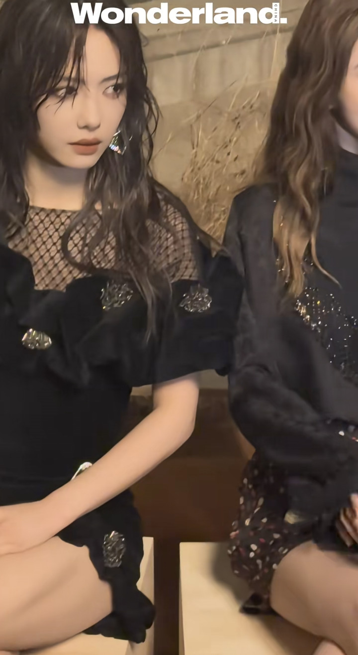 旁边的吴千语,身穿黑色高领上衣搭配碎花短裤,大大的流苏耳环很是抢镜。她脸型比较长,虽然五官很精致,但地包天还是很明显的,尤其是说话,或者做一些表情的时候。