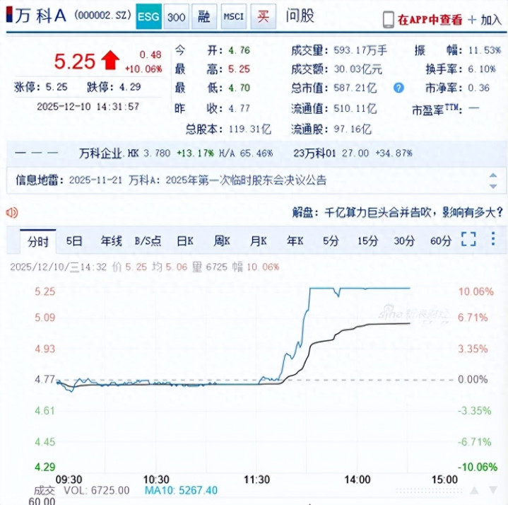 万科A涨停了, 啥情况